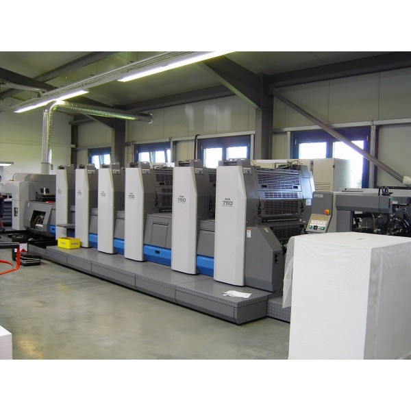 RYOBI 755 P + LX-D- PERFECTING 2/3 or 5/0- Max. paper size 788 x 600 mm- Max. print size 765 x 545 mm- RYOBIMATIC DAMPENING- INK TEP. CONTROL- FULL AUTOMATIC PLATE CHANGE- FULL AUTO INK SET UP- ALL WASHERS- COCKING- ANILOX COATER- IR DRYER- EXTENDED DELIVERY- PCS-G Digital machine control and diagnostics- PDS-E INLINE INK SLIDE ADJUSTMENT