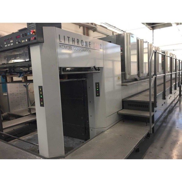 KOMORI Lithrone LS 840 P - Max. paper size 720x1030 mm- Smallest size 360x520 mm- Image area 710x1020 mm- Plate size 800x1030 mm- Speed 15000 sheets/h- Stock thickness 0.04 - 0.45 mm- 4+4 8+0- Age 2007 / Installed 2008- AMR - KHS - PQC - PDC-SII - KMS - IV - KOMORIMATIC dampening - APC - COKING - PTP - ALL WASHERS- Antistatic - Double-sheet control - Pneumatic sidelay control - KHS Pre-Inking System - Chromed cylinders - Double sized impression cylinders- Air transfer with venturi - Grafix powder sprayer